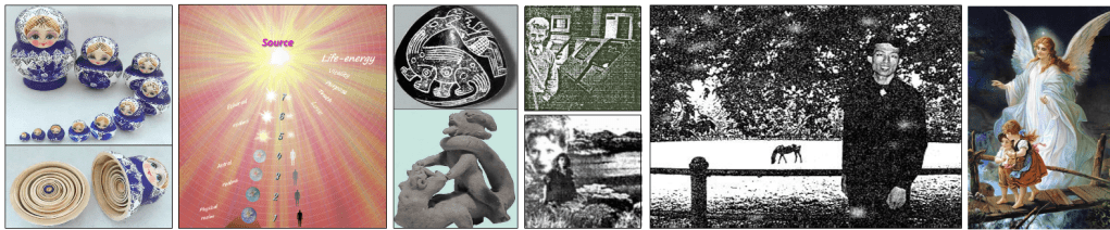 Everything everywhere is nested like Russian dolls, systems within systems. There’s physical nesting that we’re familiar with, and there’s spiritual nesting that’s more mysterious. These articles take a close look at the various spirit realms and extraterrestrial cultures, the ancient human timeline stretching back 4 billion years, the discoveries of modern science compared to the timeless truths of religion, spirit communication through technology, how life-energy seems to work, how money is an artificial life-energy, and a lot more.