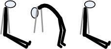 11 – Crab: Sit up with your legs together on the floor in front of you, put your palms down on the floor beside you, and look down at your navel. Then raise your torso toward the sky and bend your head back so you’re looking behind you. Then return to the sitting position looking down. Breathe out as you raise your torso, and out as you lower it. (Goal: Do this 25 times before moving to the next routine.)