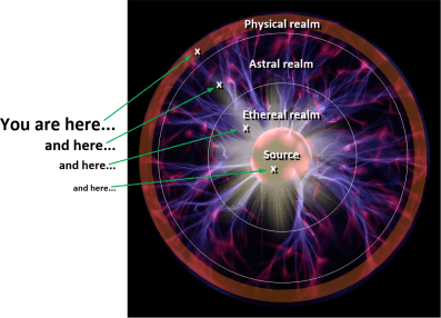 • a spiritually nested being whose true, innermost self (the soul) is an eternal part of the source that’s forever steady and all-knowing… while our illusory outer shell (physical body) is experiencing a short-sighted, unruly lifetime on this noble-savage Planet Earth. Between the body and soul we also have a series of astral and ethereal bodies. Our spirit bodies and soul, of course, continue to live and to flourish before the birth and after the death of the physical body, as well as during our lifetime.