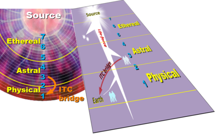 The seven arbitrary levels are all described elsewhere on this website (a recent article here, for example, or an older article here…). All we need to know for this article is that an ITC bridge is established from a sending station at level 3 to a receiving station on Earth (at level 1). Level 3 is where most people on Earth awaken after they die… (one reason why an ITC bridge always starts at level 3).