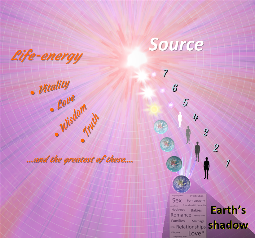 To understand sex in context of the vast omniverse, we have to embark on two fascinating journeys—one into our distant past, and the other into the paradise spirit world at level 3 where most people from Earth get settled-in after they die. The first journey reveals how sex and reproduction apparently originated in our world. The second journey shows what sex is like when hormones and reproduction are taken out of the equation.