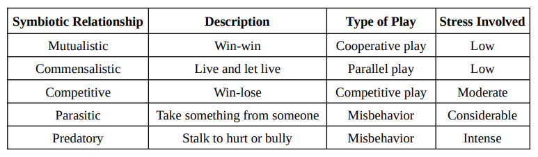 Here’s a list of five symbiotic relationships, along with five associated childhood behaviors that show up during playtime: