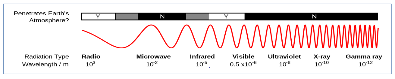 *NASA says that radio waves can actually be as short as 1mm, same as microwaves. If that’s true, then the shortest radio waves and the shortest microwaves share the same wavelength and frequency… but I can’t figure out the difference between a radio wave and microwave that both have the same wavelength of, say, 2.5 cm (1 inch). If any readers can explain that difference, I’d be obliged. 🙂