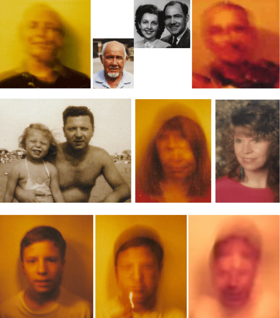 … until US reader Don Marsh recently showed me three remarkable images that he received from Sonia Rinaldi—pictures of Don’s departed relatives and pets that Sonia had collected from her ITC experiments in Brazil. Here are those three spirit pictures (compared to lifetime photos):