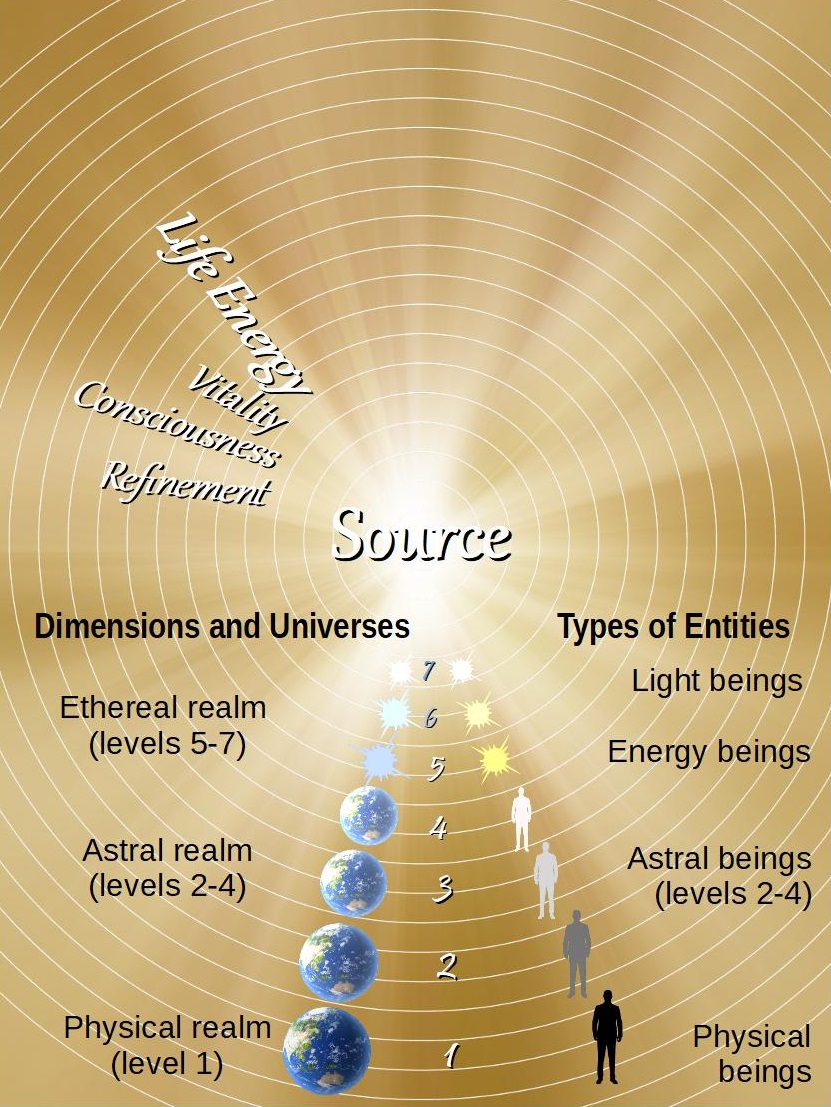 Then, countless brilliant light beings and energy beings at levels 5, 6, and 7 begin to devise that life-energy (adjust its vibration) to shape and monitor the countless, superimposed dimensions, universes, and worlds that make up the cosmos. It’s all done by enormous power of thought. These beings at levels 5 through 7 apparently include the ones that our religions recognize as archangels and super deities.