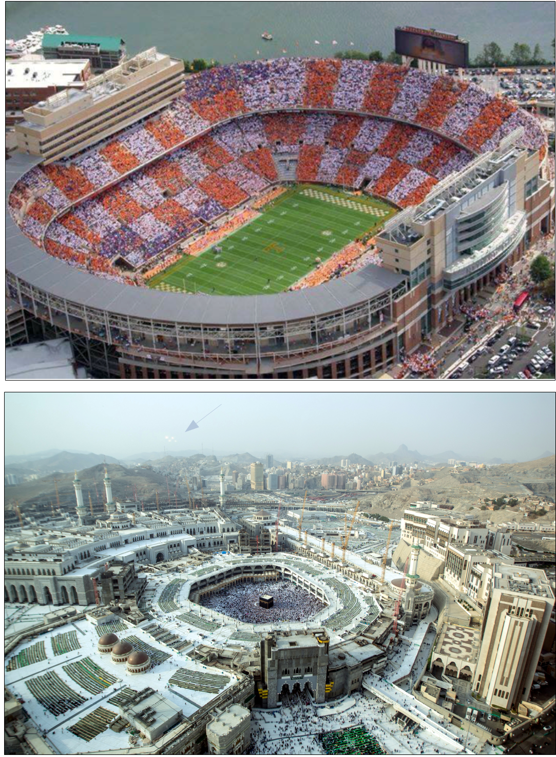 Bottom: Majid al-Haram mosque in Mecca (courtesy of Wikipedia)