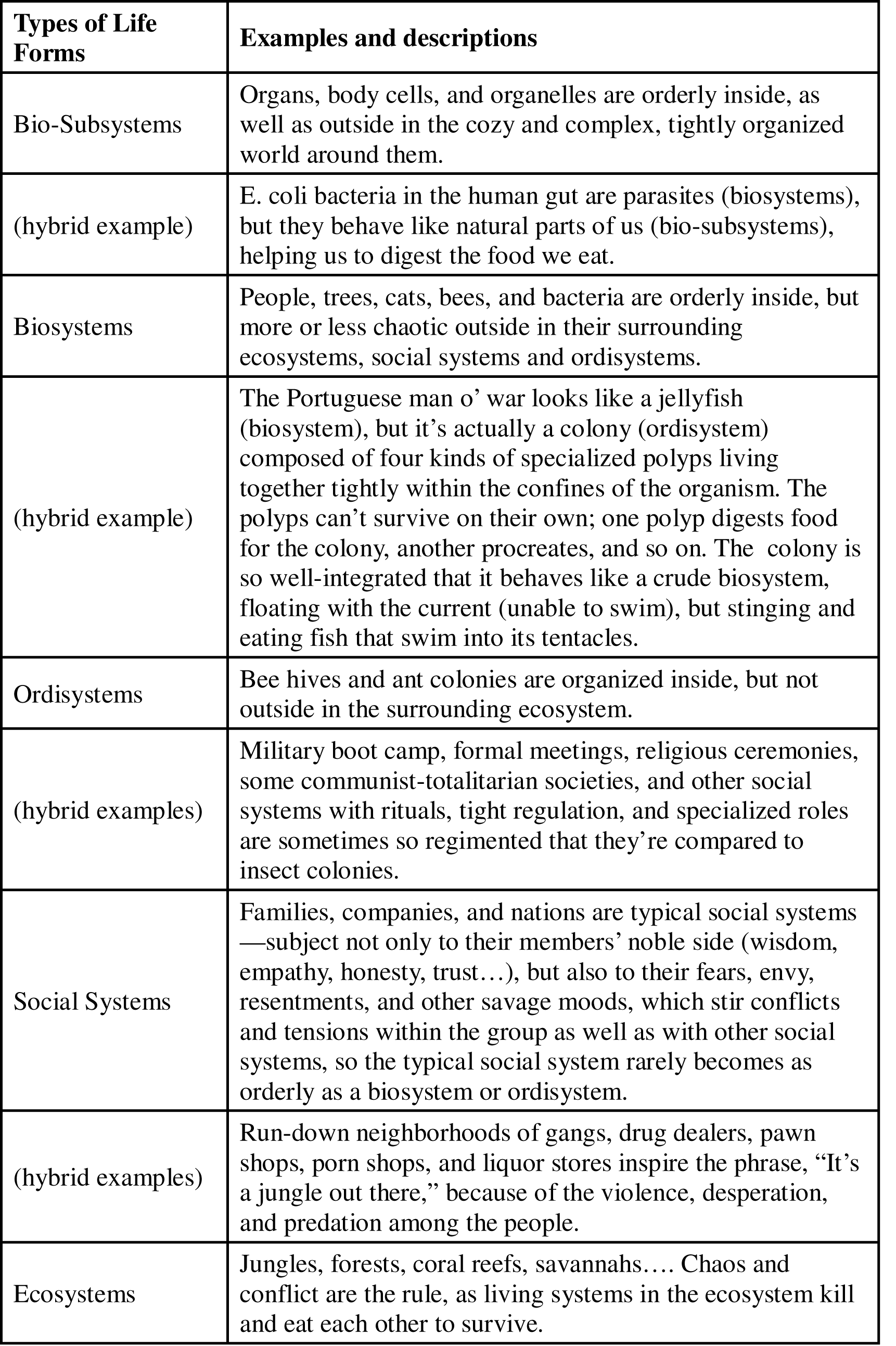 !TableOf5LifeClassifications